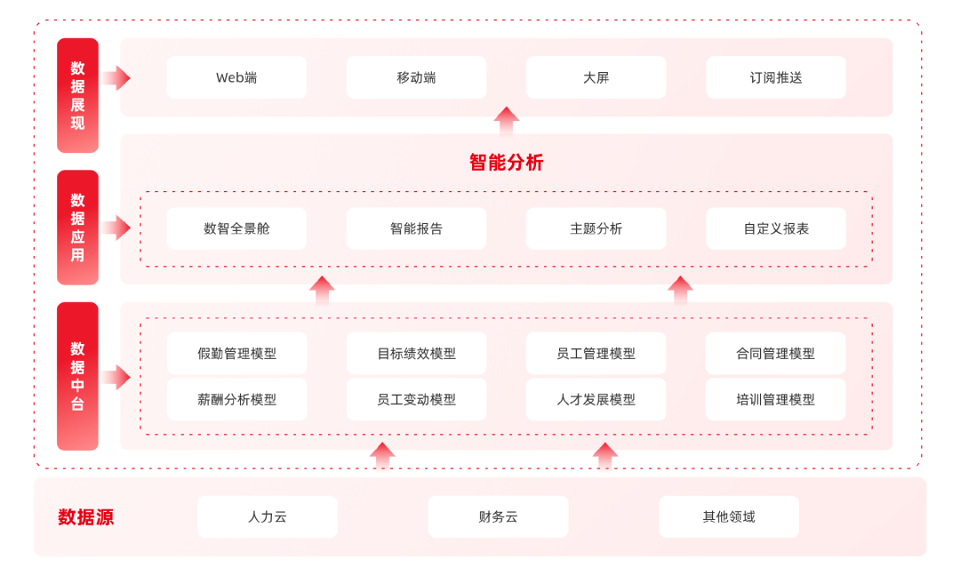 用友HR SaaS数智决策解决方案,试图解决的正是这个问题。它是沿着一条清晰的逻辑主线展开:让数据可融合、让洞察可呈现、让分析可对话——最终,让人力管理从经验驱动走向数据驱动。